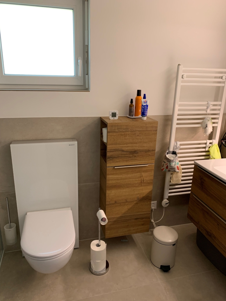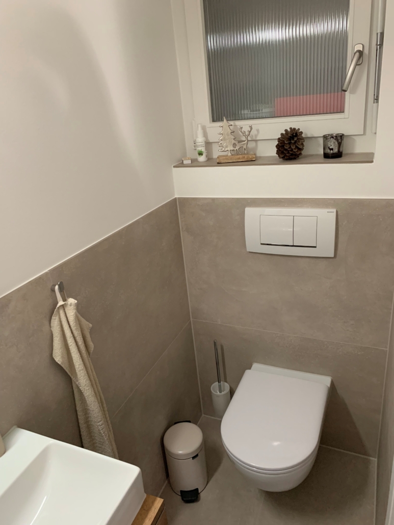 Vollständiger Rückbau des alten WCs, danach fachgerechte Maurer-, Gipser- und Malerarbeiten. Die neuen WC-Möbel wurden ebenfalls individuell entworfen und vom Schreiner passend angefertigt.