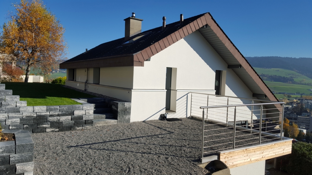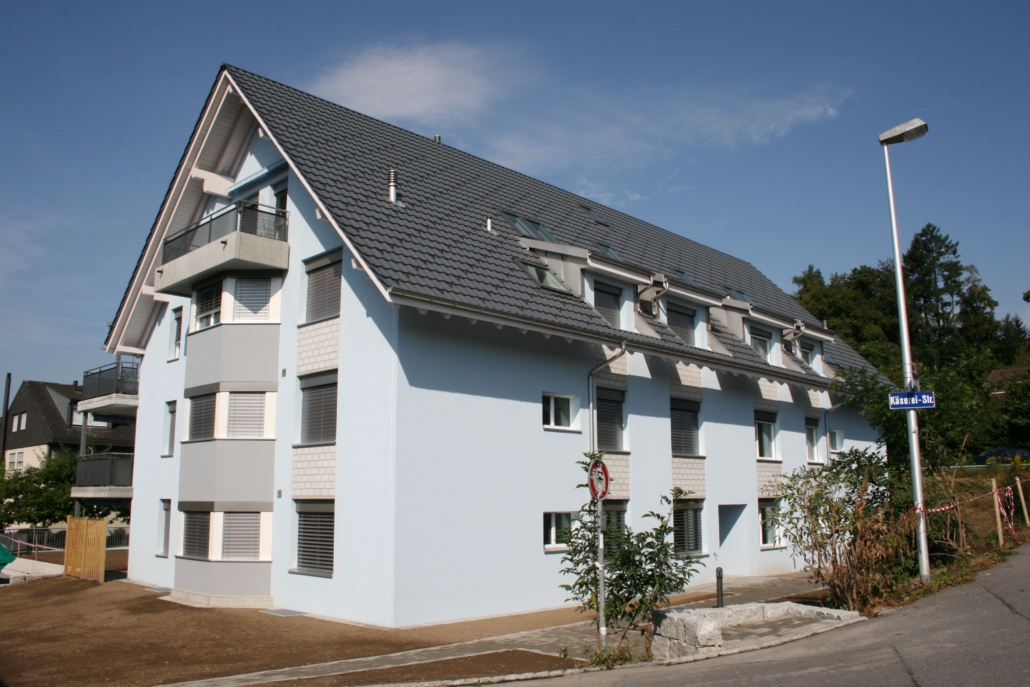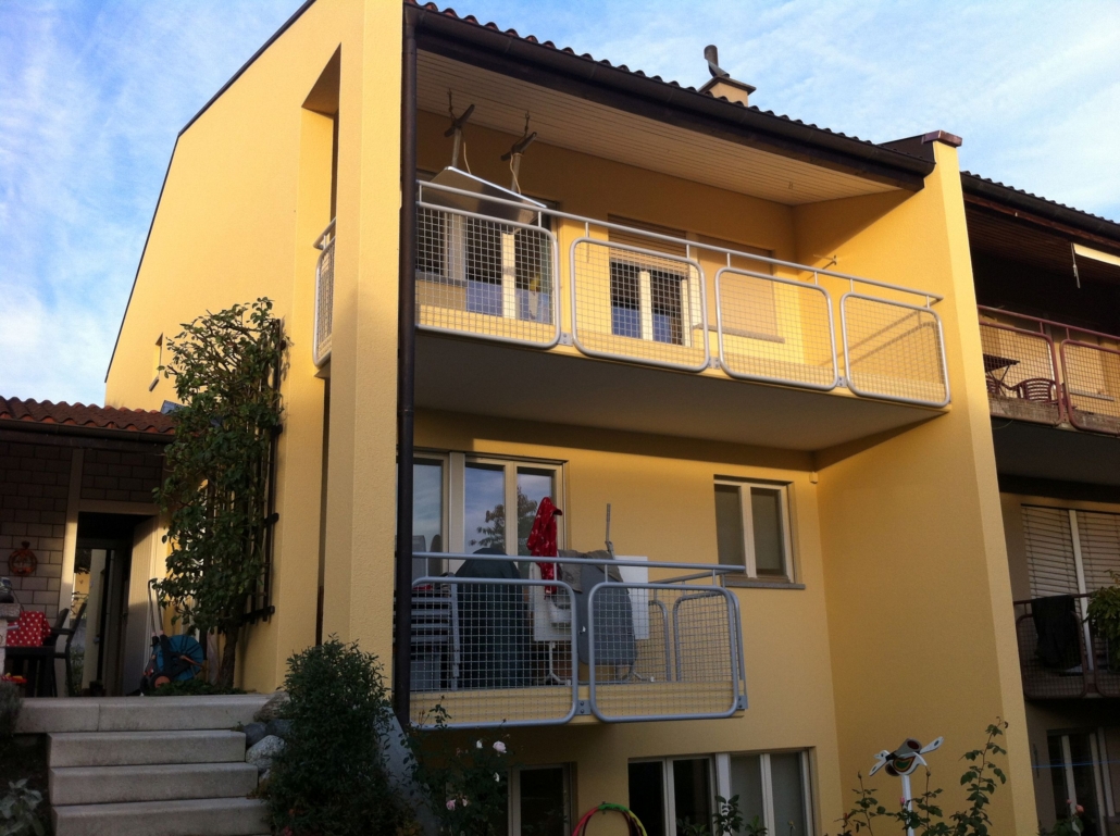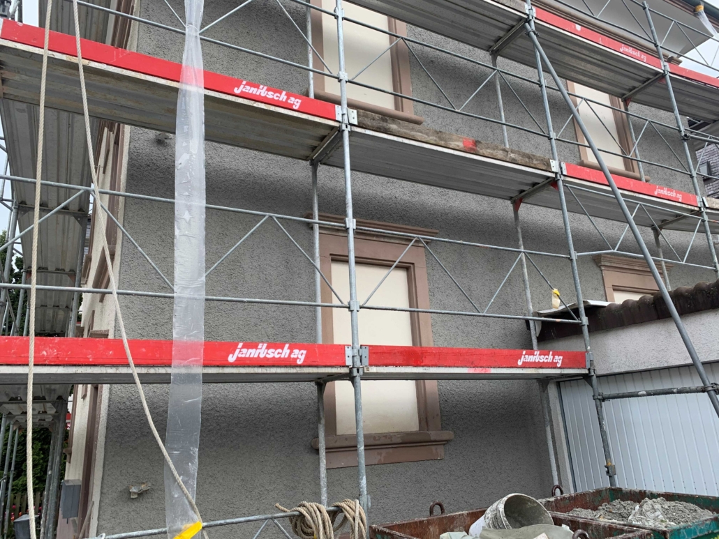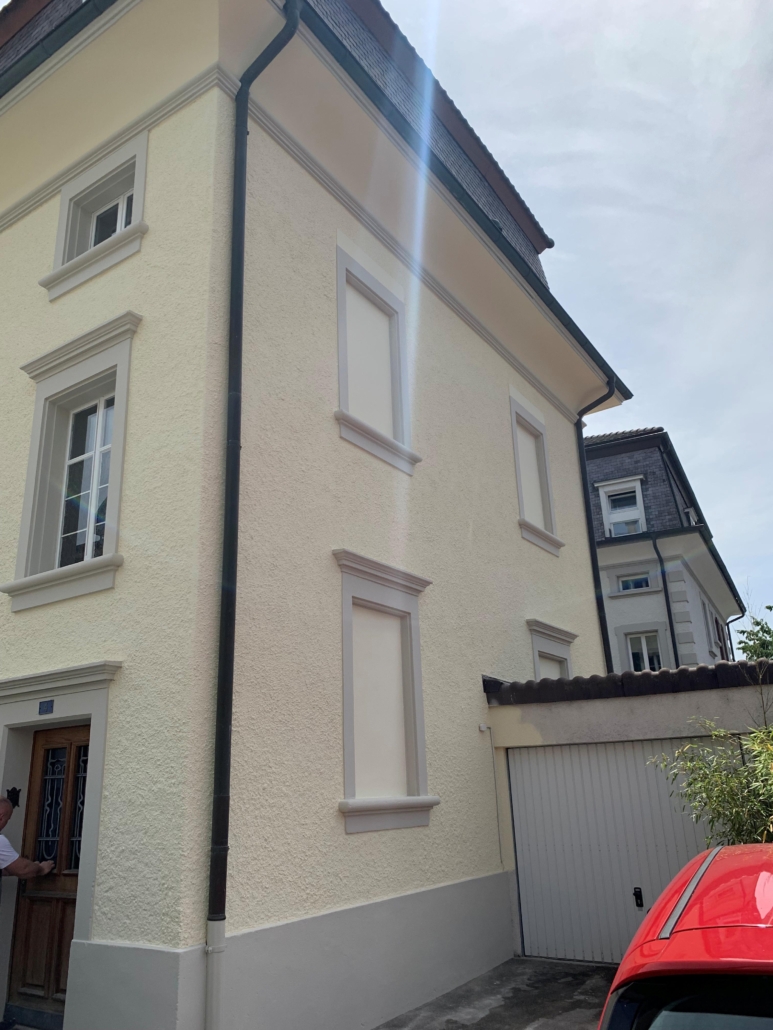 Die Beispiele zeigen verschiedene Arbeiten an Altbauten und Neubauten. Dazu gehören Fassaden ohne Dämmung, Dämmungen mit PIR, das Sanieren von Rissen, Hohlstellen und beschädigten Sockelbereichen. Je nach Zustand wurden Rissbrücken montiert, Gewebeeinbettungen erstellt, neuer Anwurf oder Feinverputz aufgetragen und die Fassaden frisch gestrichen. Auch Betonschäden an Balkonen sowie durch Efeu verursachte Fassadenschäden wurden vollständig saniert. Bei Neubauten wurden Grundputz und Deckputz auf Backsteinmauerwerk ausgeführt sowie Dämmungen mit abschliessendem Verputz und Fassadenanstrich erstellt.